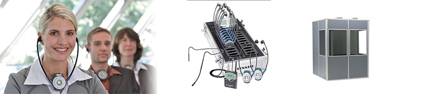 We offer simultaneous interpretation services using our portable interpretation system which can serve up to 90 people with its cordless Sennheiser headsets.